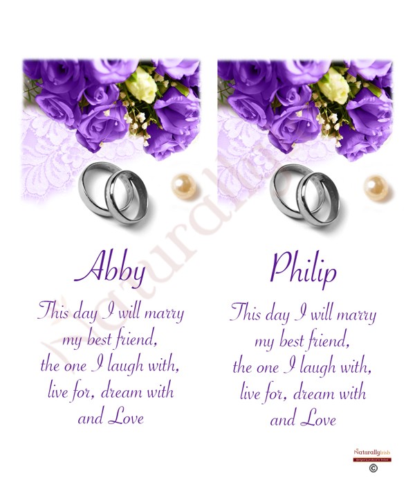 Pearl, Rings & Dark Purple Roses Gold Wedding Candles