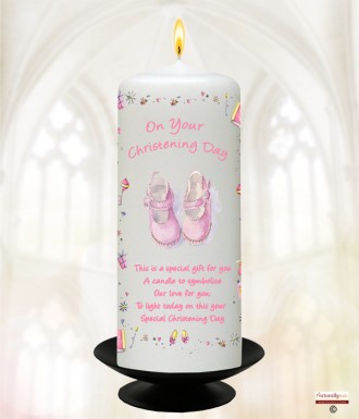 Gingham & Shoes Pink 6inch Christening Candle
