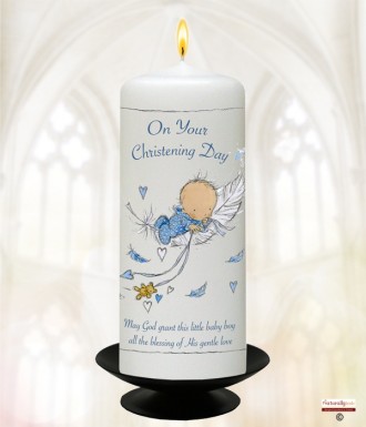 BCC Font, Cross & Dove Blue 6inch Christening Candle