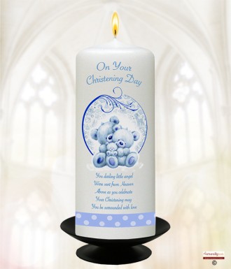 Butterflies & Feet Blue 6inch Christening Candle