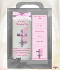 Cross & Fish Pink 6inch Christening Candle