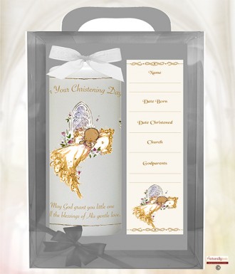 Heart, Bird & Hand Blue 6inch Christening Candle