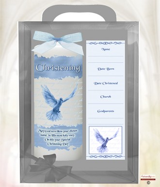 Church & Rosary Blue 6inch Christening Candle