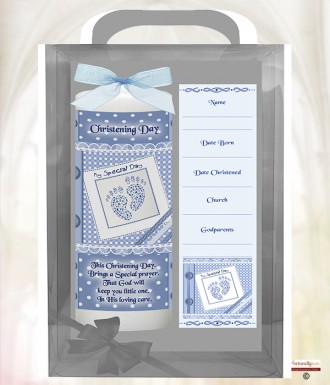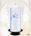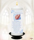New Baby Quilt & Teddy Blue 6inch White Candle