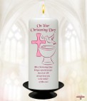 Font, Dove & Cross Pink Christening Candle