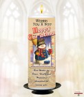 Postcard Snowman & Present Christmas Candle