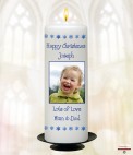 Santa's Coming to Town Photo (Blue) Christmas Candle